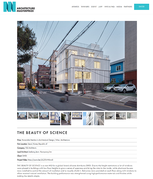 Beauty of Science 가 2022 Architecture Masterprize 에서 Honorable Mention 을 수상하였습니다