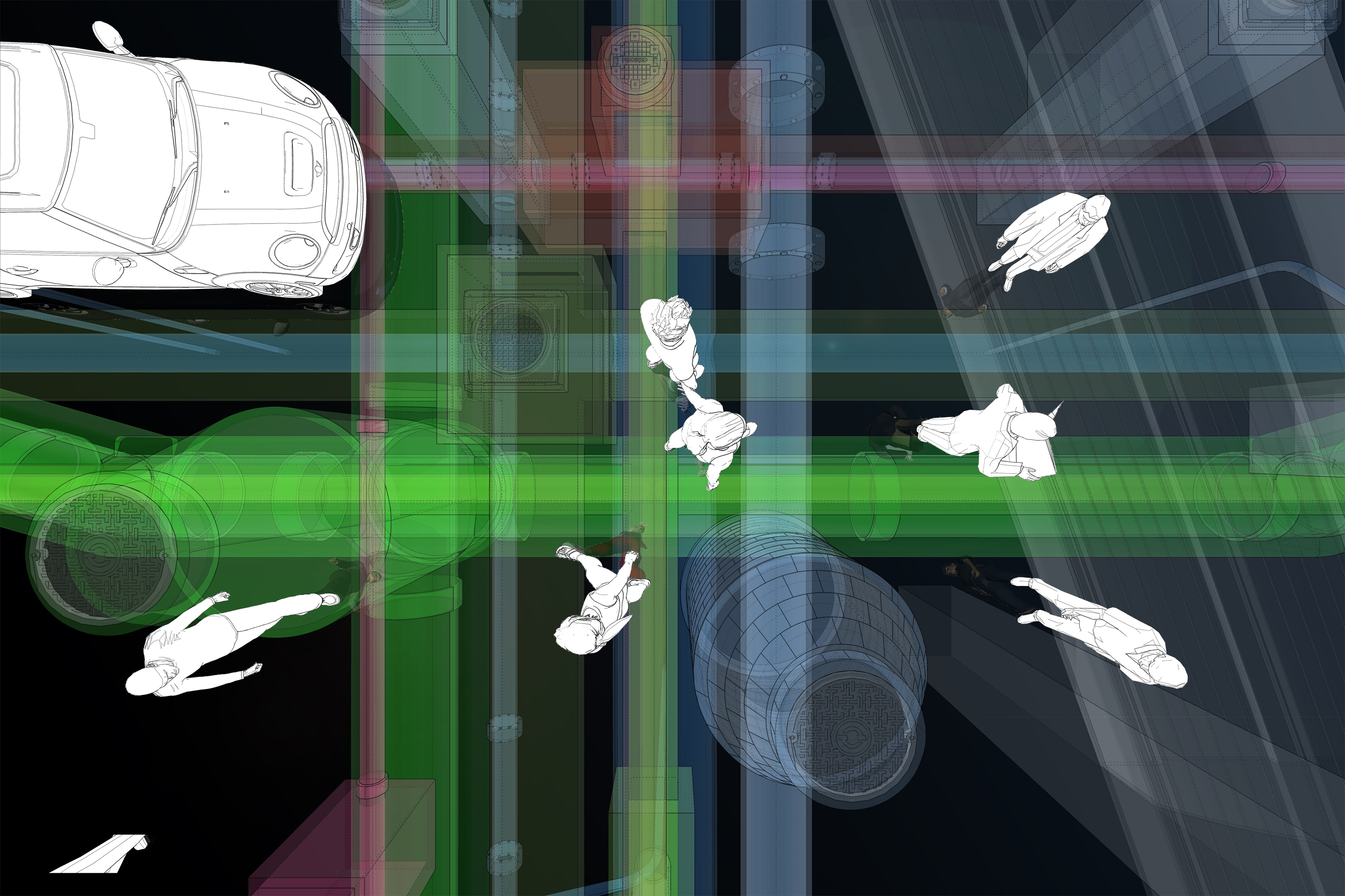 One is able to go through dynamic urban scenery on the ground as well as a vigorous underground landscape at the same time. These three-dimentional images enriches the urban life allowing new ways to see the city.