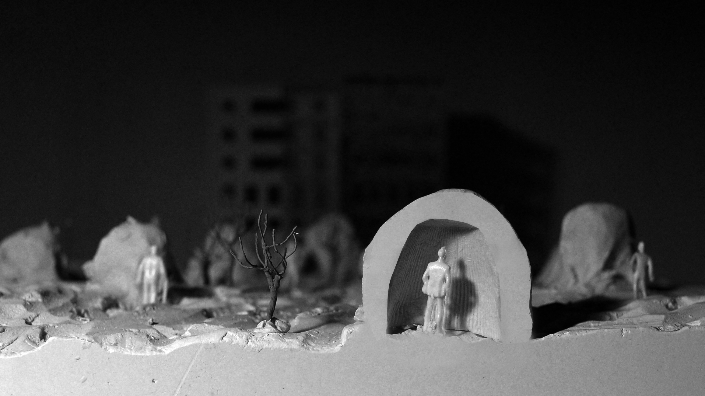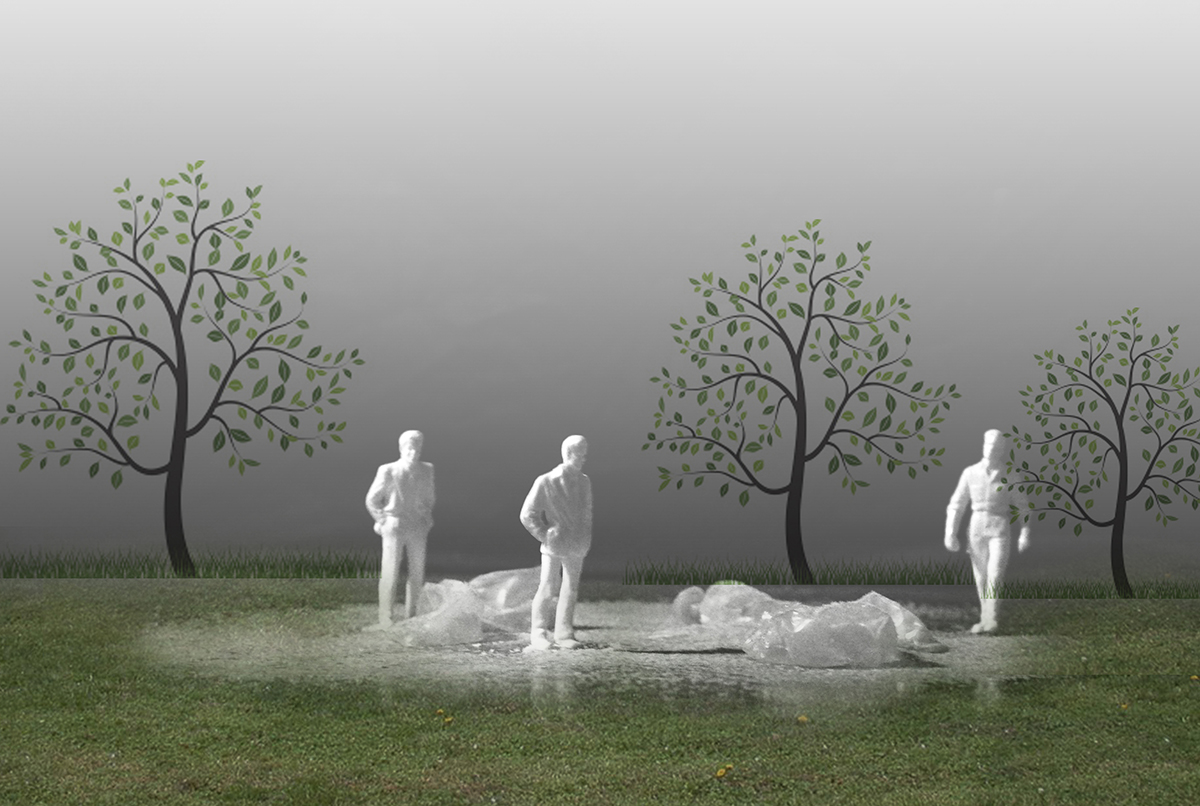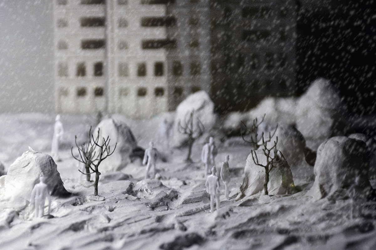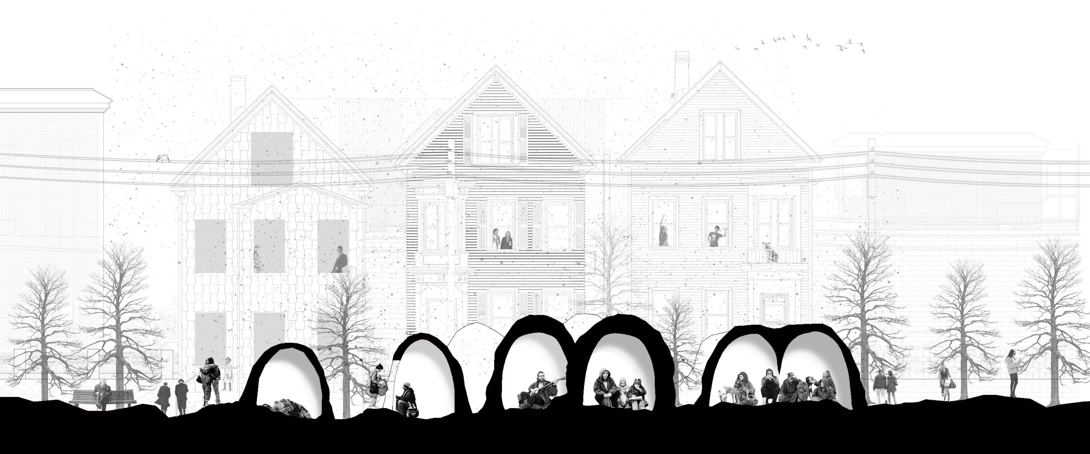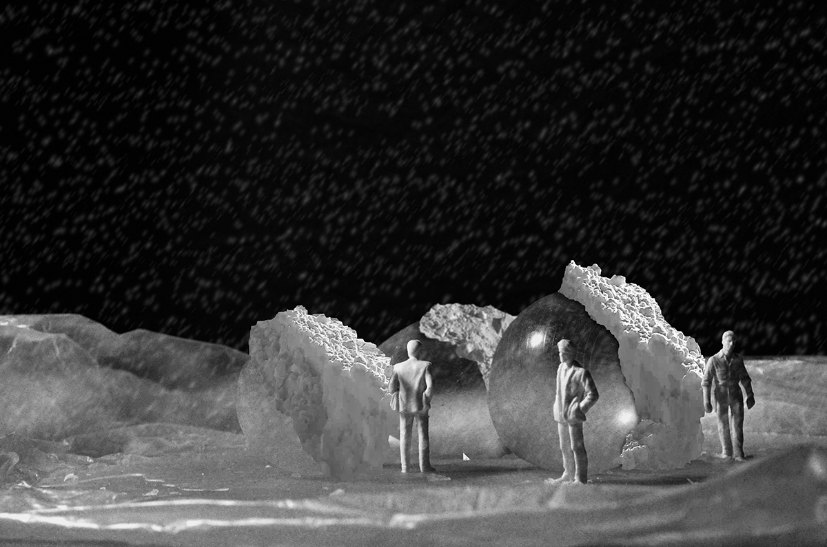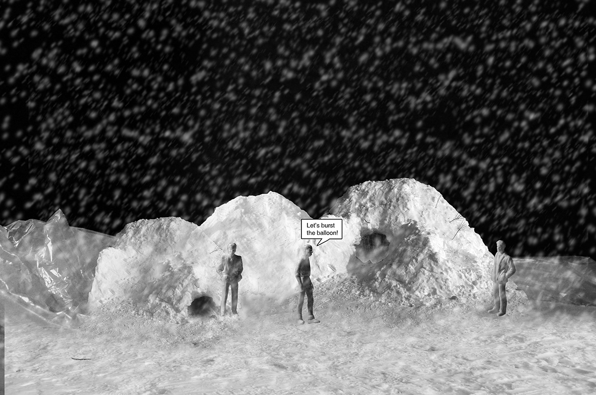 Once the balloon is entirely covered with snow, people can burst the balloon, retaining a small entrance. As the balloon is blew up, empty space would be created in the snowdrift. The void space could be used as a temporary shelter for the homeless.