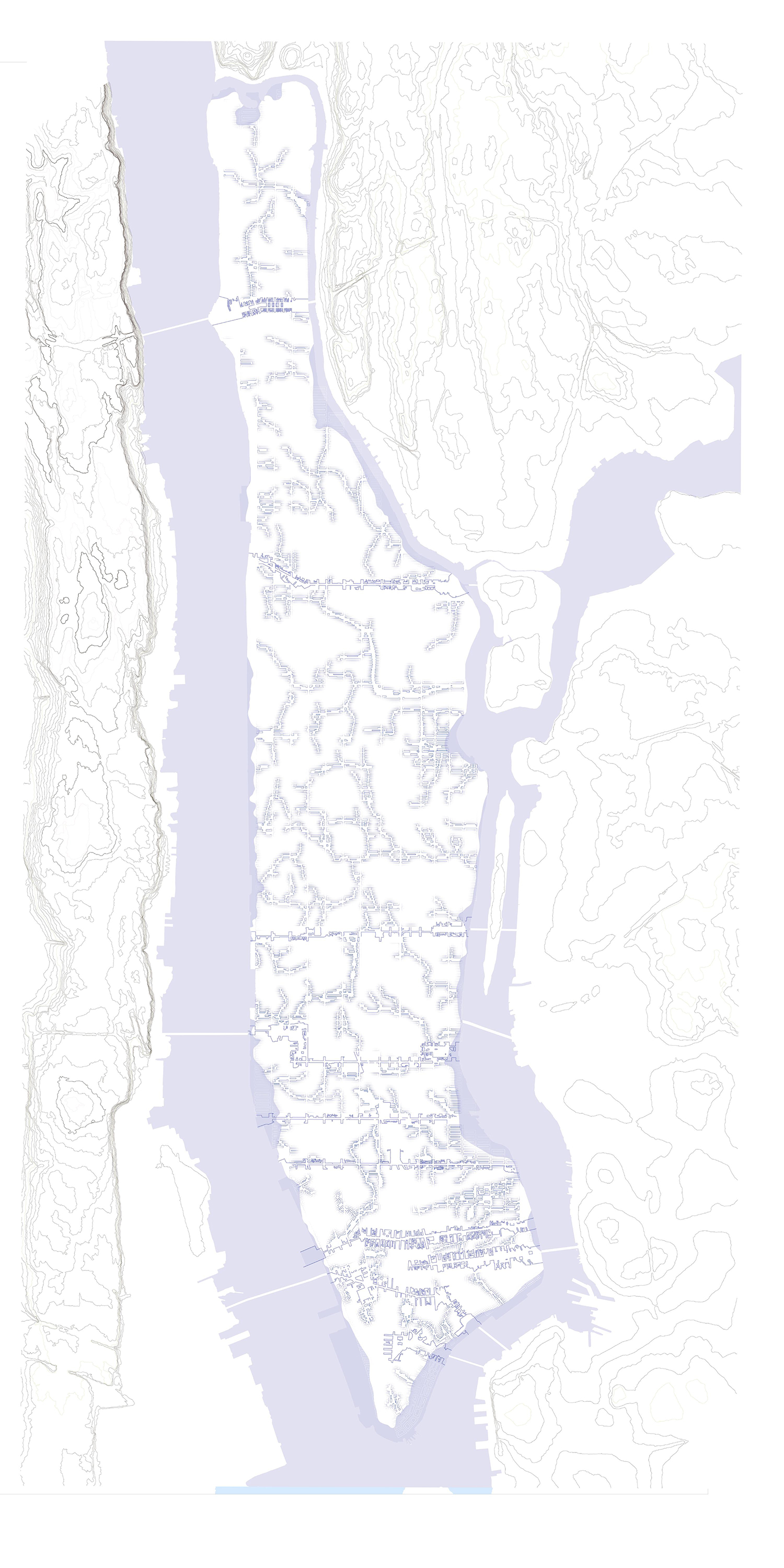 Manhattan’s grid produces a homogeneous structuring of the territory of the city. However, both Canal Street and Houston Street are configured differently; they introduce, among other public spaces, irregular streetscapes. Tribeca evidences the triangulation produced by the collision of different grid negotiations resolved in irregular blocks. Additionally, infrastructures such as the Holland Tunnel produce voided public spaces that also interrupt the grid. This reading of irregular transformations of the city grid led to a recoding and transformation of the regular homogeneous city block, creating a range of differentiated typological ruptures in the grid system.