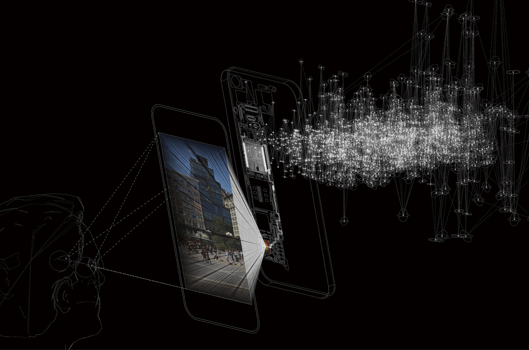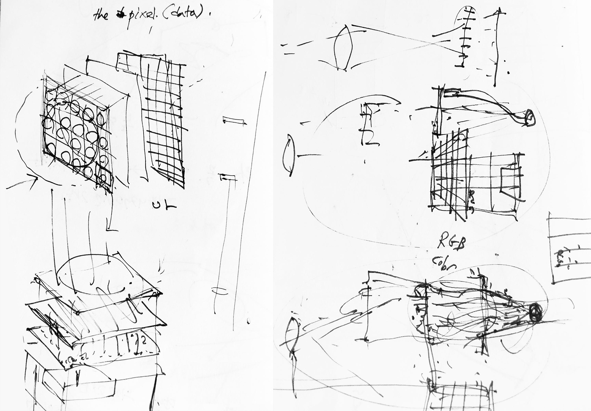 Physical space is transformed into data after being pixelated by the camera of mobile devices. The data as a form of cloud is wandering the city by means of infrastructure, and then it changes into images when the data compounds with a certain order. In other words, people constantly send every moment of physical space up to the data cloud, which has the potential to turn into various images.